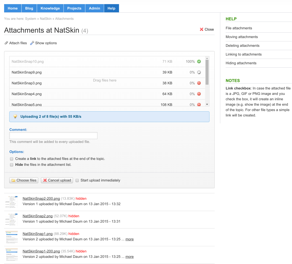 17 Jul 2015: added compatibility with Foswiki-2.0; added new topic creator supporting Foswiki:Extensions/WikiWorkbenchContrib TopicTypes; faster implementation of WebTopicList based on Foswiki:Extensions/DBCachePlugin; now depending on Foswiki:Extensions/ListyPlugin for the my-sidebar feature; now depending on Foswiki:Extensions/WebFontsContrib for better typography; dynamic menu for mobile devices; added support for mega menus using the natMegaMenu css class; better seo by supporting Open Graph meta data; nicer change-form dialog supporting WikiWorkbenchContrib 3.00; improved child-topics dialog displaying topic titles properly; added natedit settings to eaily switch on/off wysiwyg mode per topic; rationalized templates for topic actions to ease configuration of icons