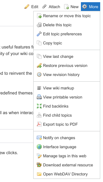 NatSkin improves your Foswiki experience by bringing together some of the most useful features from different plugins in a consistent way. NatSkin comes with a modern web design that improves readability of your wiki content as well as easing the way you interact with it as a wiki author and consumer.